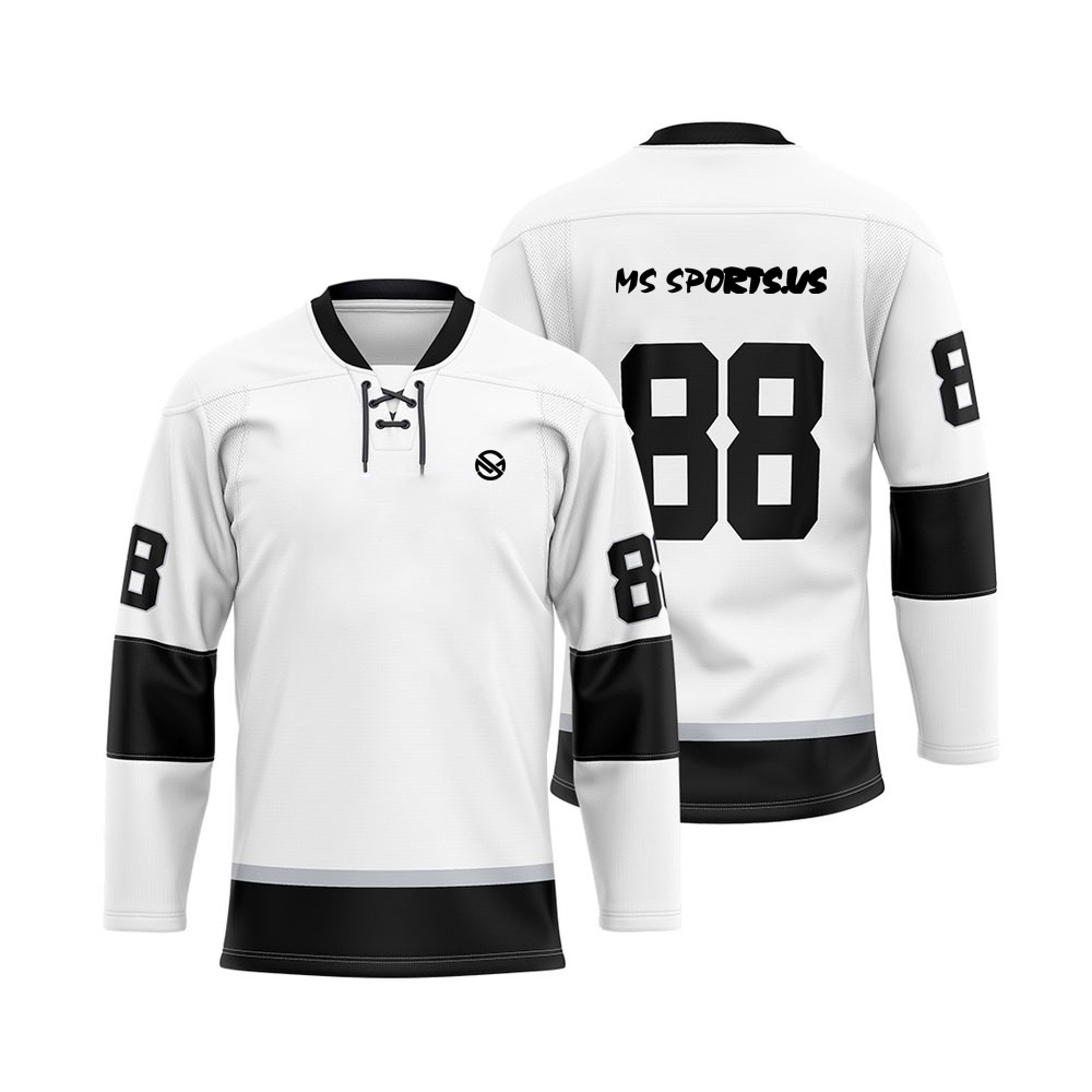 Custom White Black Full Sleeves Ice Hockey Jersey